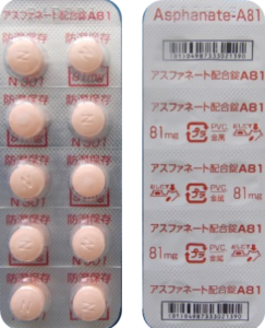 後発品 81mg1錠 アスファネート配合錠A81 淡橙色の素錠(二層錠)/わずかに芳香を有する 直径/長径/垂線/長辺(mm)