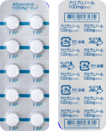 | 後発品 | 100mg1錠 | アロプリノール錠100mg「杏林」 | ![]() |