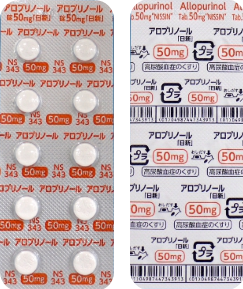 | 後発品 | 50mg1錠 | アロプリノール錠50mg「サワイ」 | ![]() |