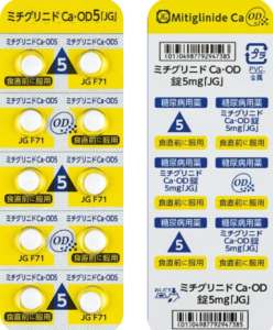 | 後発品 | 5mg1錠 | ミチグリニドCa・OD錠5mg「JG」 | ![]() |