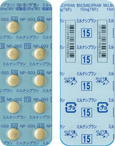 後発品 15mg1錠 ミルナシプラン塩酸塩錠15mg「NP」 淡黄色のフィルムコーティング錠 直径/長径/垂線/長辺(mm)