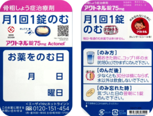 先発品 75mg1錠 アクトネル錠75mg 微黄色の楕円形のフィルムコーティング錠 直径/長径/垂線/長辺(mm)