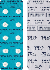 2.5mg1錠 ベネット錠2.5mg 白色〜帯黄白色のフィルムコーティング錠 直径/長径/垂線/長辺(mm)