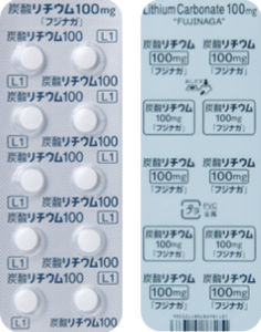 後発品 100mg1錠 炭酸リチウム錠100mg「フジナガ」 白色のフィルムコーティング錠/におい及び味はない 直径/長径/垂線/長辺(mm)