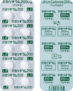 後発品 200mg1錠 炭酸リチウム錠200mg「フジナガ」 白色のフィルムコーティング錠/におい及び味はない 直径/長径/垂線/長辺(mm)