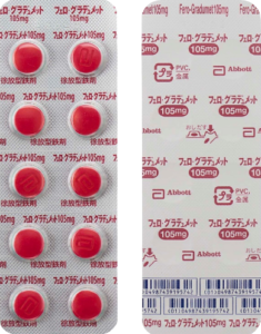 1錠 フェロ・グラデュメット錠105mg 赤色のフィルム錠 直径/長径/垂線/長辺(mm)
