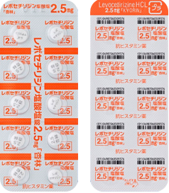 | 後発品 | 2.5mg1錠 | レボセチリジン塩酸塩錠2.5mg「日医工」 | ![]() |