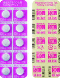 | 後発品 | 500mg1錠 | 酸化マグネシウム錠500mg「ケンエー」 | ![]() |
